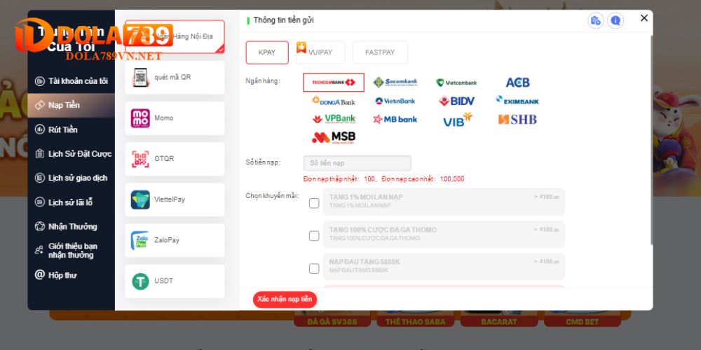 • Hạn mức linh hoạt, người chơi có thể nạp – rút tối thiểu từ 50.000đ.